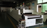 2、外形尺寸(約):總長24500mm*總高1740mm*總寬1890mm,地面到網(wǎng)帶的高度為950-1050mm,爐體內(nèi)進料高度為150mm;烘干部分總長14000mm,分7段獨立控溫(每段4個測溫熱電偶),每段2000mm。冷卻段長4000mm,UV區(qū)2000mm,前后緩沖區(qū)各長500mm,進料部分長2000mm,出料部分長1500mm, 爐體前后大梁上方裝有急停開關(guān),共4個。
