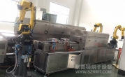 疫苗玻璃瓶特殊涂層工藝,預熱+固化自動化對接隧道爐烘烤線 1、設備名稱:硅化西林瓶生產線; 2、本生產線分為機械手移載產品至菱形線、取樣與安全防護門、菱形輸送線、預熱爐、產品出爐溫控監測及位置檢測、噴硅系統、視覺檢測系統、流量監測系統、NG排除機構、機械手移載至網帶輸送線、取樣與安全防護門、網帶輸送線、固化爐、機械手移載至包裝線、取樣與安全防護門;系統分為兩種生產模,硅化線和非硅化。