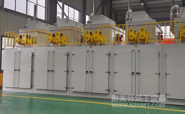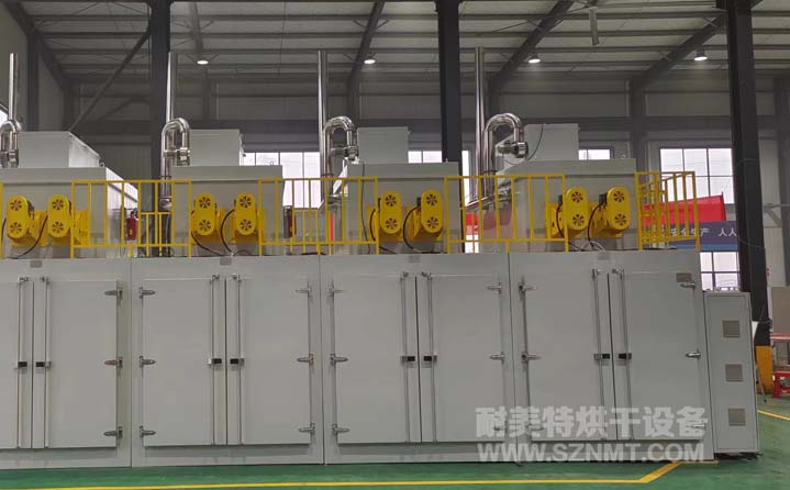 單個產品進入烘箱前91KG,烘烤后49KG,去水量42KG/個,每個烘箱放置16個產品,爐內滿足8個架子每個架子上下疊加放置2個產品,架子尺寸為800*800*1750mm。